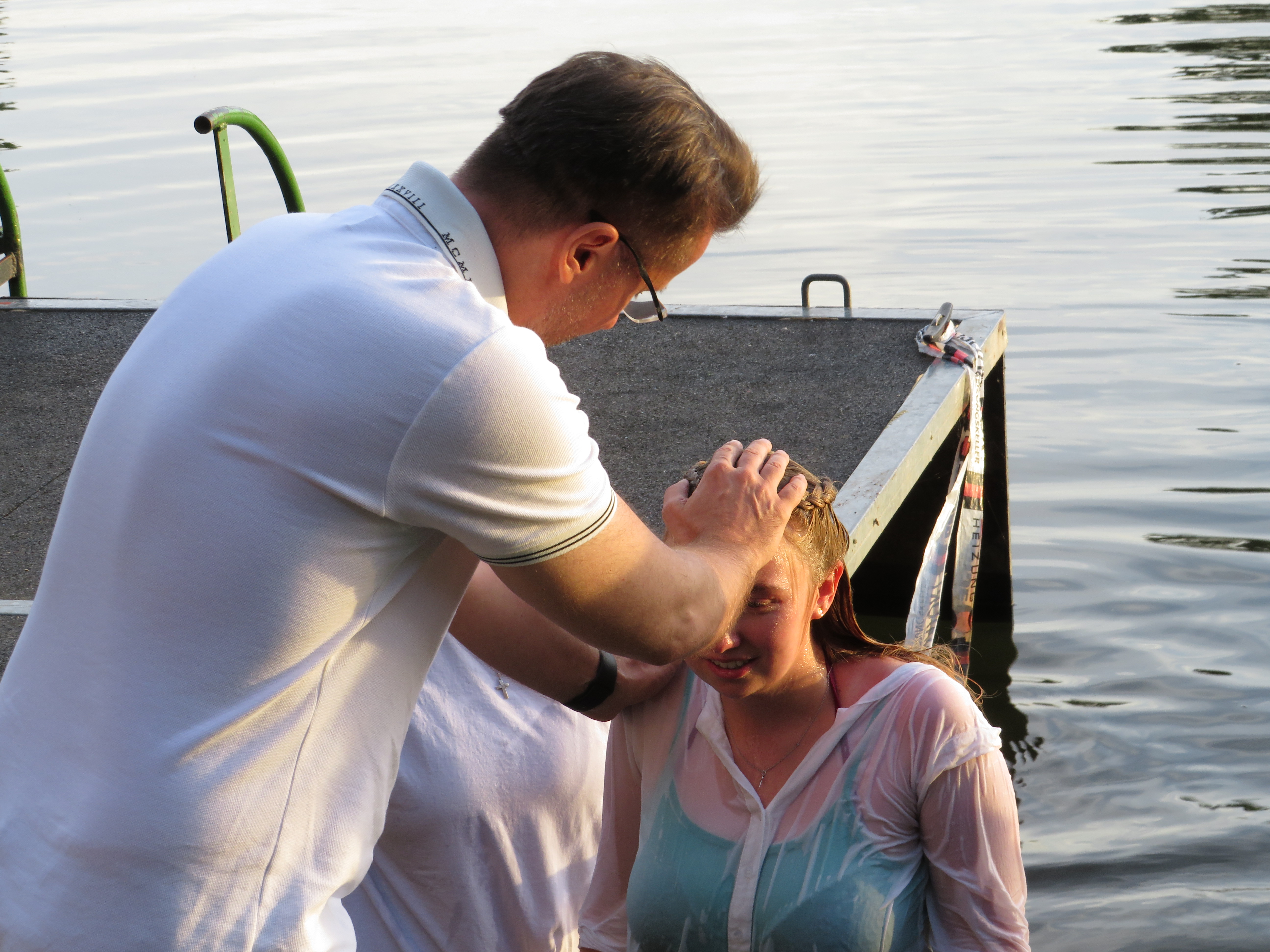 Bei bestem Wetter und mit zahlreich erschienenen Studierenden, Dozierenden und Gästen wurden die zwei Täuflinge Giulia Zach und Johanna Christina Rick getauft und in die Familie Gottes aufgenommen. Das einmalige Ambiente bei Sonnenuntergang und mehrstimmiger Geräuschkulisse der Band, der ausgelassene Beifall nach der Taufe und die anschauliche Predigt von Prof. Dr. Rüdiger Gebhardt machten diesen Gottesdienst unvergesslich.