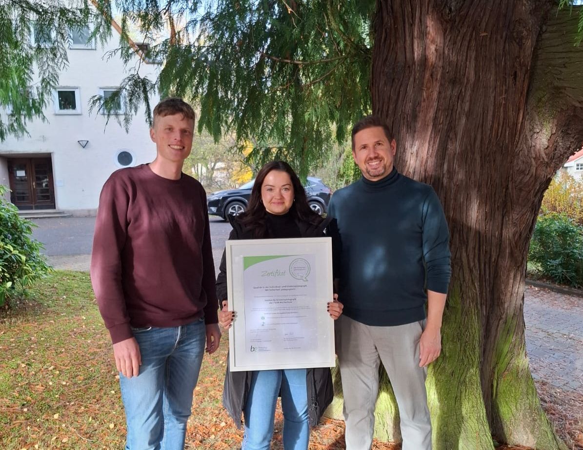 Das Institut für Erlebnispädagogik (IfEP) der CVJM-Hochschule wurde zum vierten Mal mit dem Qualitätssiegel beQ des Bundesverbands Individual- und Erlebnispädagogik e.V. (BE) ausgezeichnet – mit einem Top-Ergebnis: 178 von 183 Punkten!