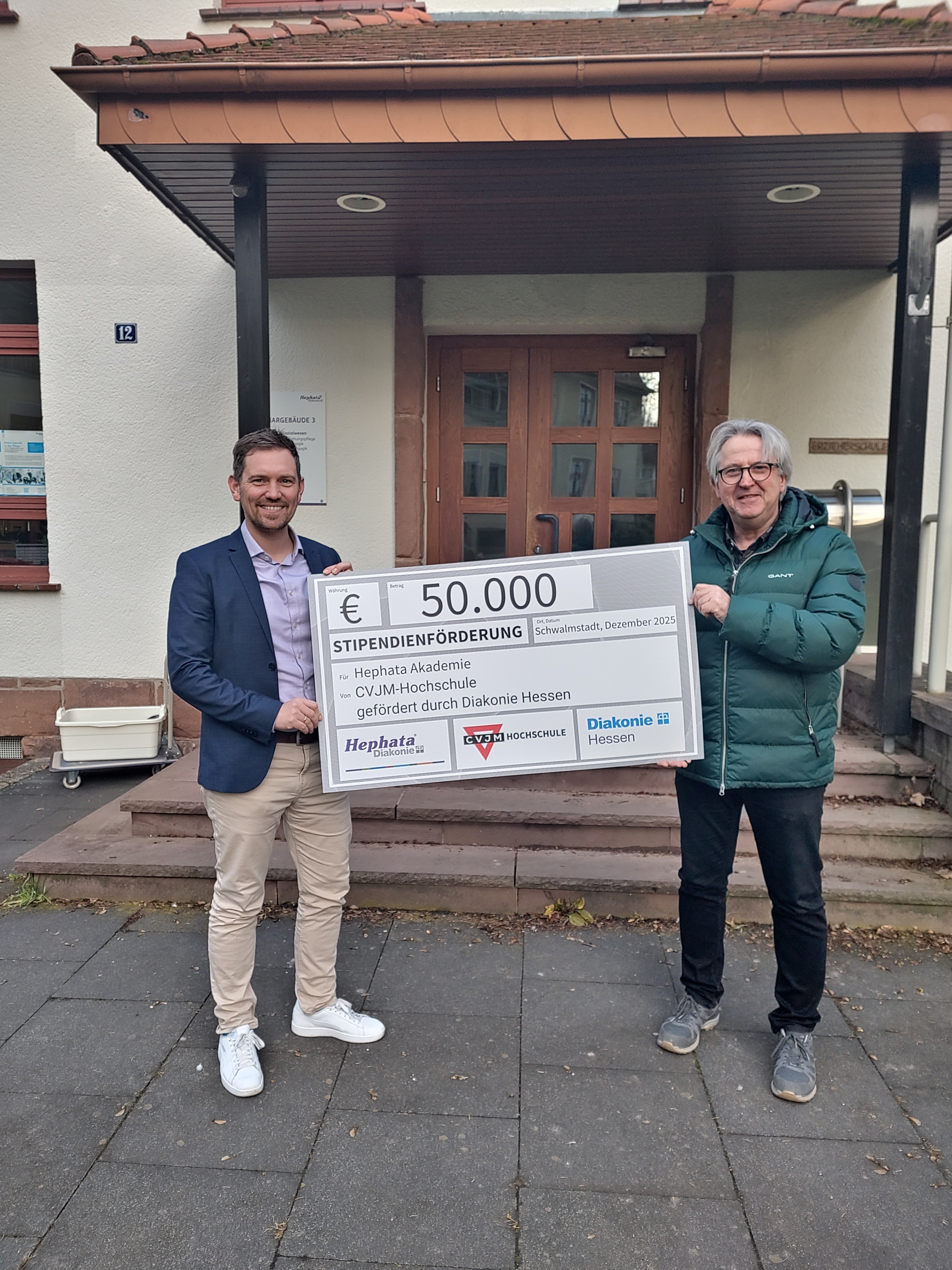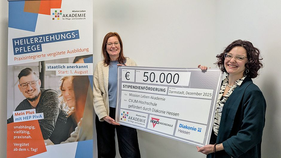 Mit dem Stipendienprojekt HEPsozial geht eine besondere Förderphase zu Ende: Zum letzten Mal können Stipendien in einer Gesamthöhe von 100.000 Euro vergeben werden, ermöglicht durch die großzügige Unterstützung der Diakonie Hessen. Bei der symbolischen Scheckübergabe an die Projektbeteiligten Hephata Akademie und Akademie Mission Leben wurde deutlich, wie bedeutsam diese Förderung ist. Das Geld kommt genau dort an, wo es gebraucht wird, und macht einen echten Unterschied für die zukünftigen Studierenden.